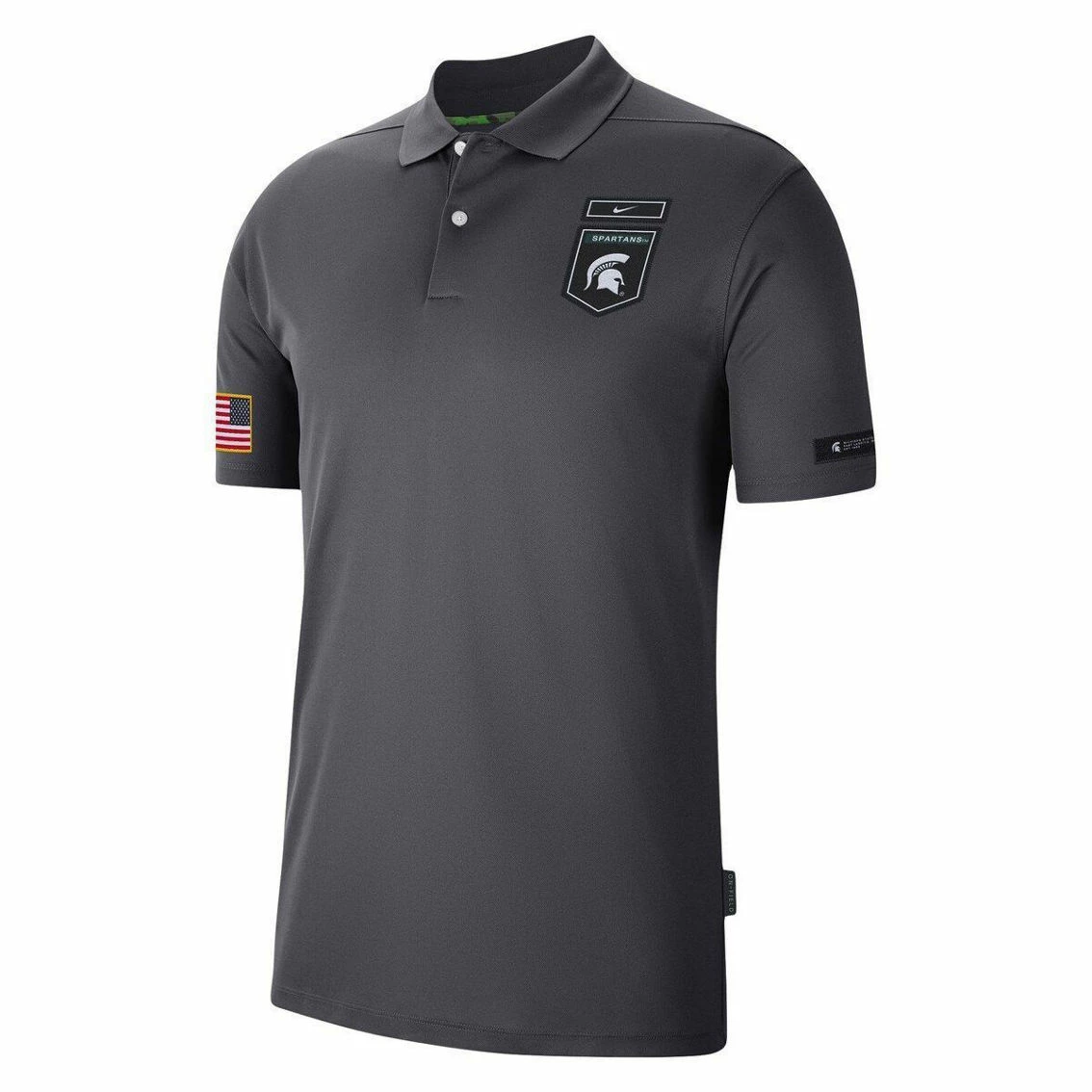 - Flex your Michigan State Spartans pride by sporting this classic Nike Victory polo. It features commemorative Military Appreciation patches along with bold Michigan State Spartans graphics for a dedicated top. Plus, moisture-wicking Dri-FIT technology and sustainable Move to Zero properties keep you fresh and comfortable.
