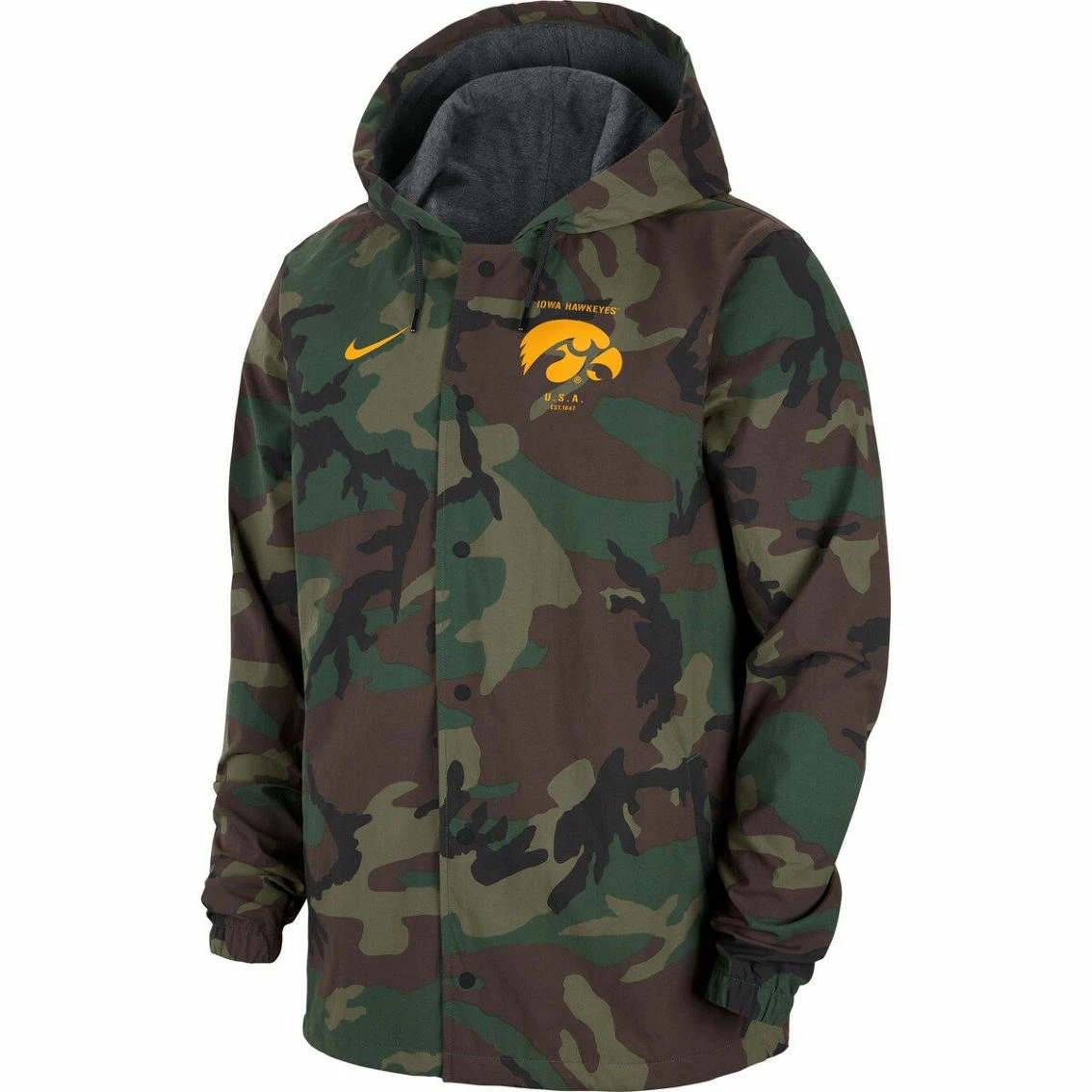 - Wrap yourself in undeniable Iowa Hawkeyes style when you grab this full-snap hoodie from Nike. Along with a strong nylon shell that helps resist weather, this jacket offers a soft hood lining for cozy coverage and two front pockets for additional storage. Its vibrant Iowa Hawkeyes graphics and unique camo pattern make this an incredible addition to your outerwear collection.