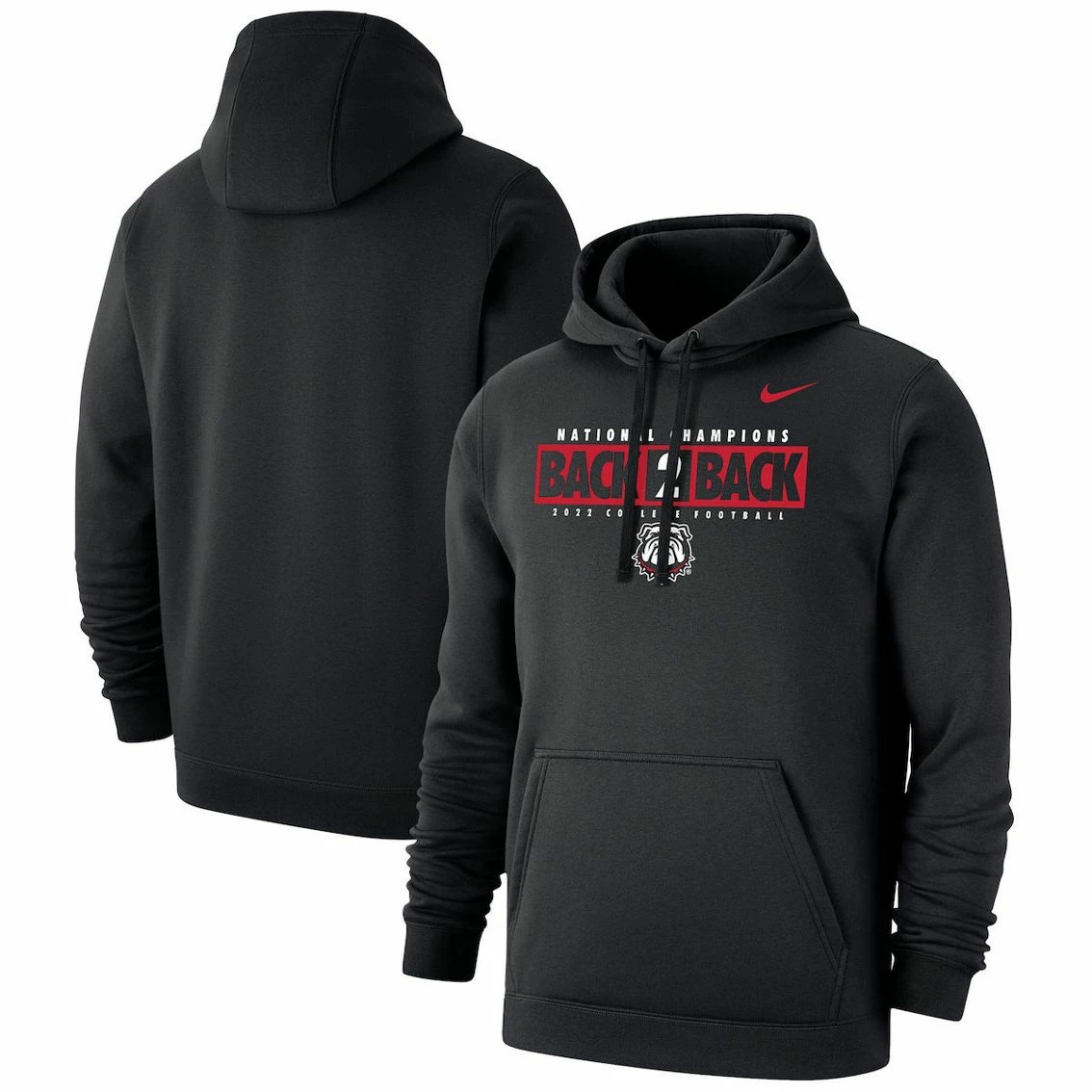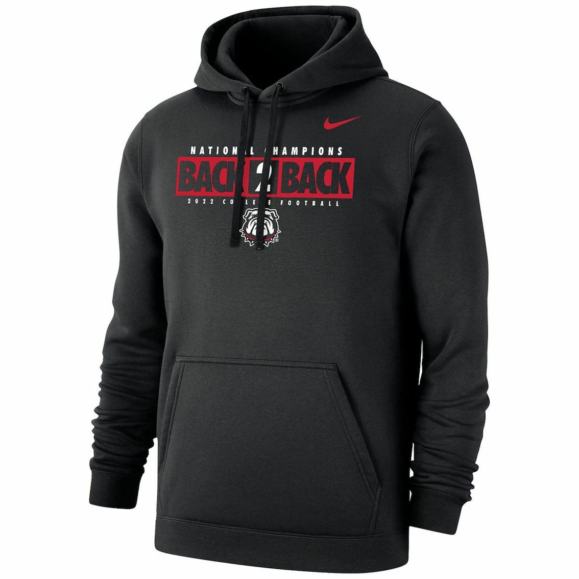 - After an exhilarating season, the Georgia Bulldogs are now the Back-To-Back College Football Playoff National Champions! They pulled off all the right plays on both sides of the ball to claim their spot as the best in the country. Show off your excitement for the Georgia Bulldogs by grabbing this Big & Tall Pullover Hoodie from Nike. Special commemorative graphics will help you celebrate this National Championship and incredible victory for the Georgia Bulldogs.