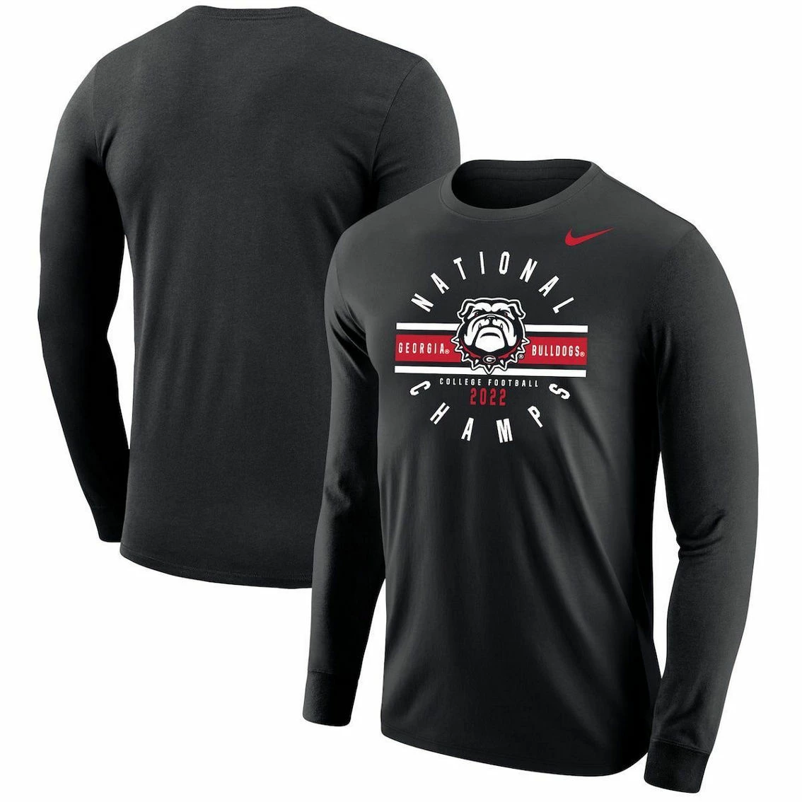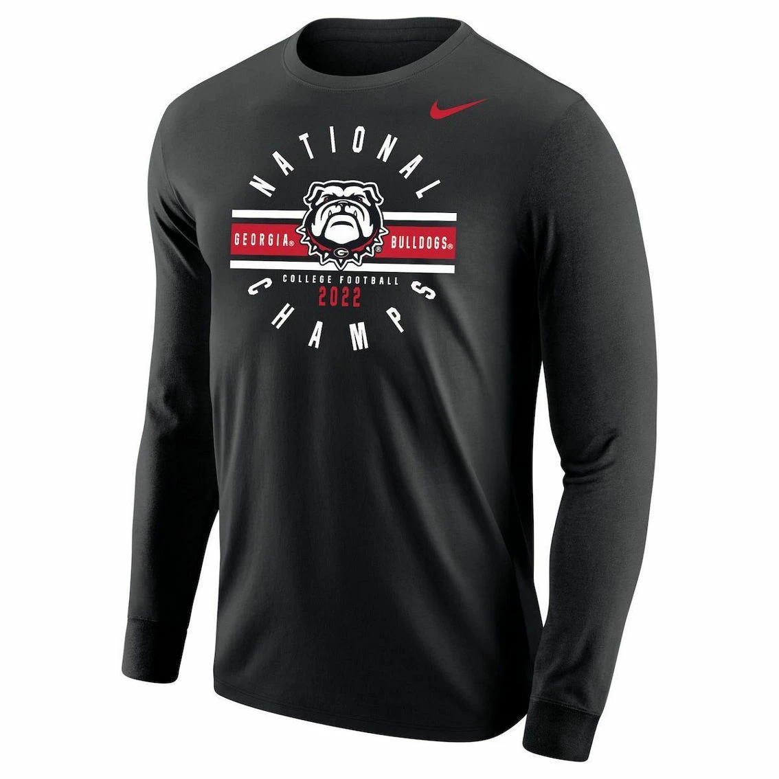 - After an exhilarating season, the Georgia Bulldogs are now the College Football Playoff 2022 National Champions! They pulled off all the right plays on both sides of the ball to claim their spot as the best in the country. Show off your excitement for the Georgia Bulldogs by grabbing this Long Sleeve T-Shirt from Nike. Special commemorative graphics will help you celebrate this National Championship and incredible victory for the Georgia Bulldogs.