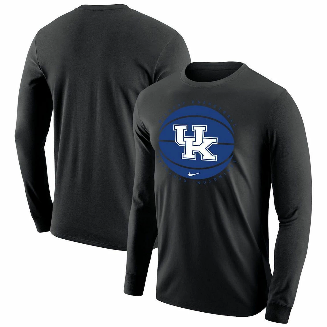 - When the Kentucky Wildcats hit the hardwood, be ready to cheer them on with this T-shirt from Nike. It features the team’s logo on top of an exciting basketball design, as well as the city that they call home written below it. When you throw on this long sleeve tee and feel that soft cotton fabric, you’ll know that you have your new go-to piece of Kentucky Wildcats gear.