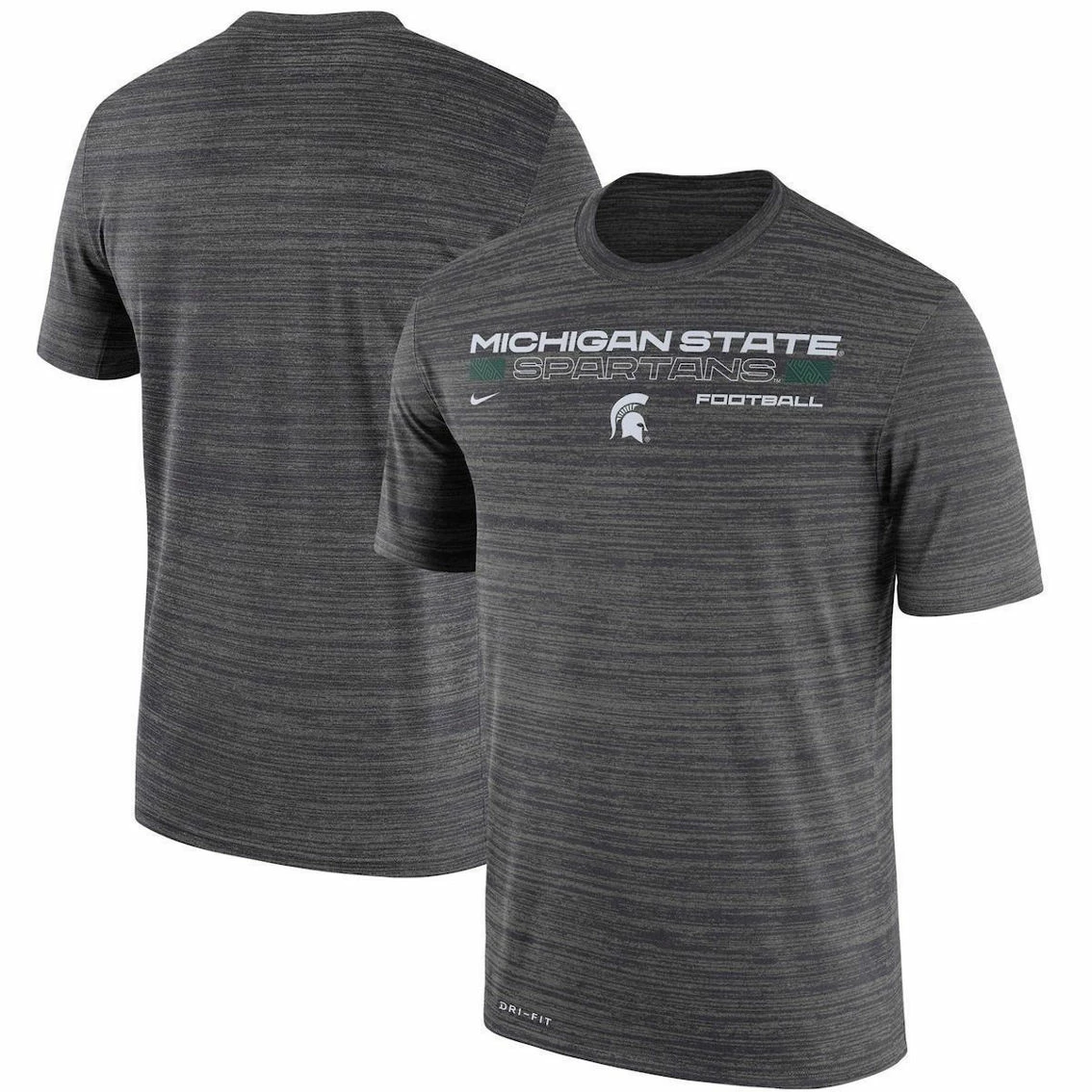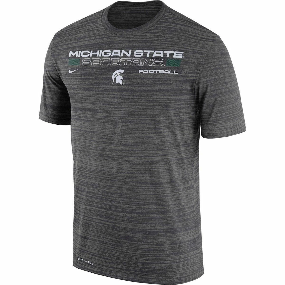 - Staying comfortable while showing dedication to the Michigan State Spartans is easy in this Velocity Legend Performance T-shirt from Nike. Additionally, the fun pattern draws attention to the large Michigan State Spartans logo on the chest, making it the perfect tee for game day.