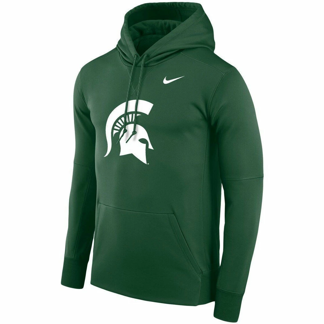- When cooler weather sticks around, stay comfortable in this Michigan State Spartans pullover hoodie from Nike. It keeps you warm by managing your body’s natural heat using Nike Therma fabric. The printed Michigan State Spartans graphics also ensure everybody sees which team you are loyal to no matter the temperature.