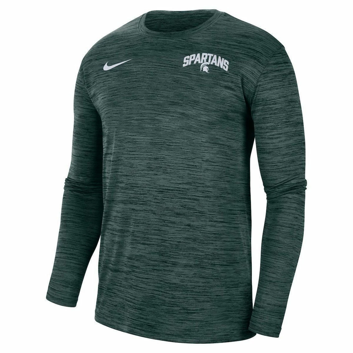 Nike Men's Green Michigan State Spartans Sideline Game Day Velocity Performance Long Sleeve T-Shirt