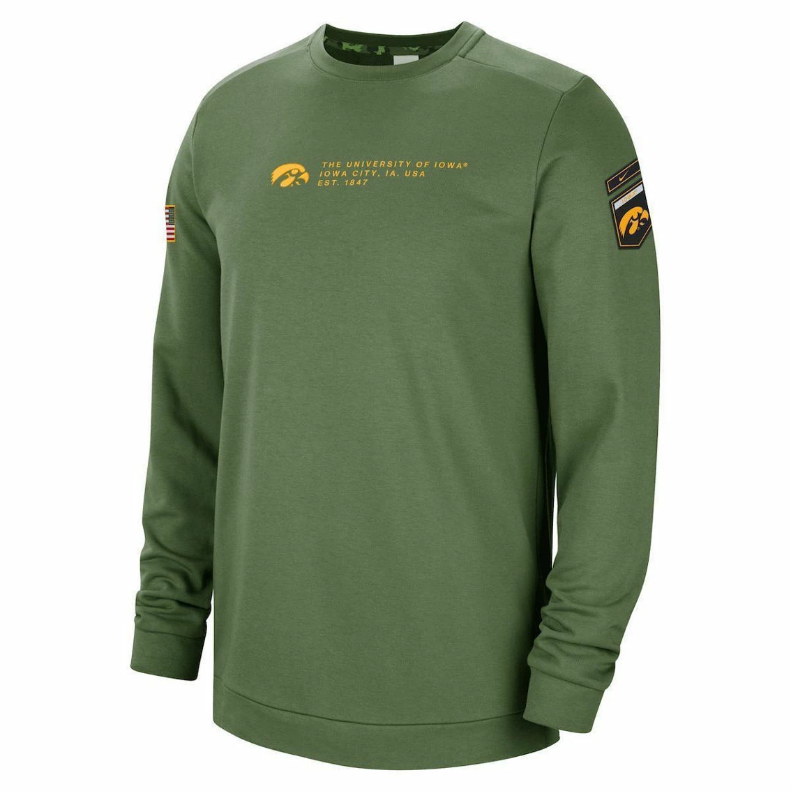 - Show your Iowa Hawkeyes pride during colder temperatures by sporting this Military Pullover Sweatshirt from Nike. The Dri-FIT material will be sure to keep you warm and comfortable during the cooler temperatures. Plus, the embroidered Iowa Hawkeyes graphics help put your team loyalty front and center.