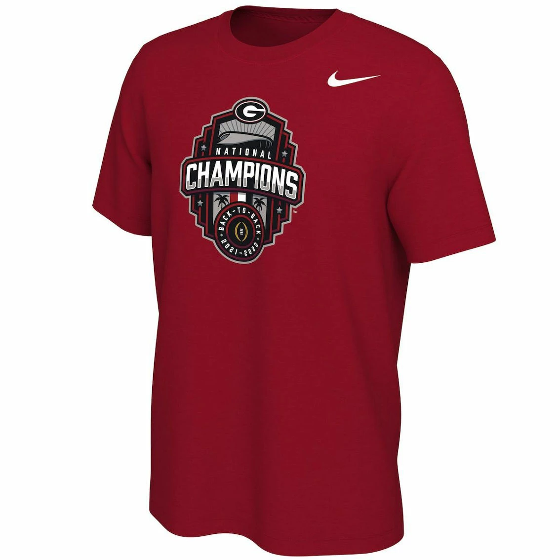- After an exhilarating season, the Georgia Bulldogs are now the College Football Playoff 2022 National Champions! They pulled off all the right plays on both sides of the ball to claim their spot as the best in the country. Show off your excitement for the Georgia Bulldogs by grabbing this Logo T-Shirt from Nike. Special commemorative graphics will help you celebrate this National Championship and incredible victory for the Georgia Bulldogs.