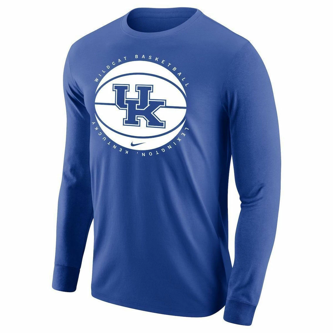 - When the Kentucky Wildcats hit the hardwood, be ready to cheer them on with this T-shirt from Nike. It features the team’s logo on top of an exciting basketball design, as well as the city that they call home written below it. When you throw on this long sleeve tee and feel that soft cotton fabric, you’ll know that you have your new go-to piece of Kentucky Wildcats gear.