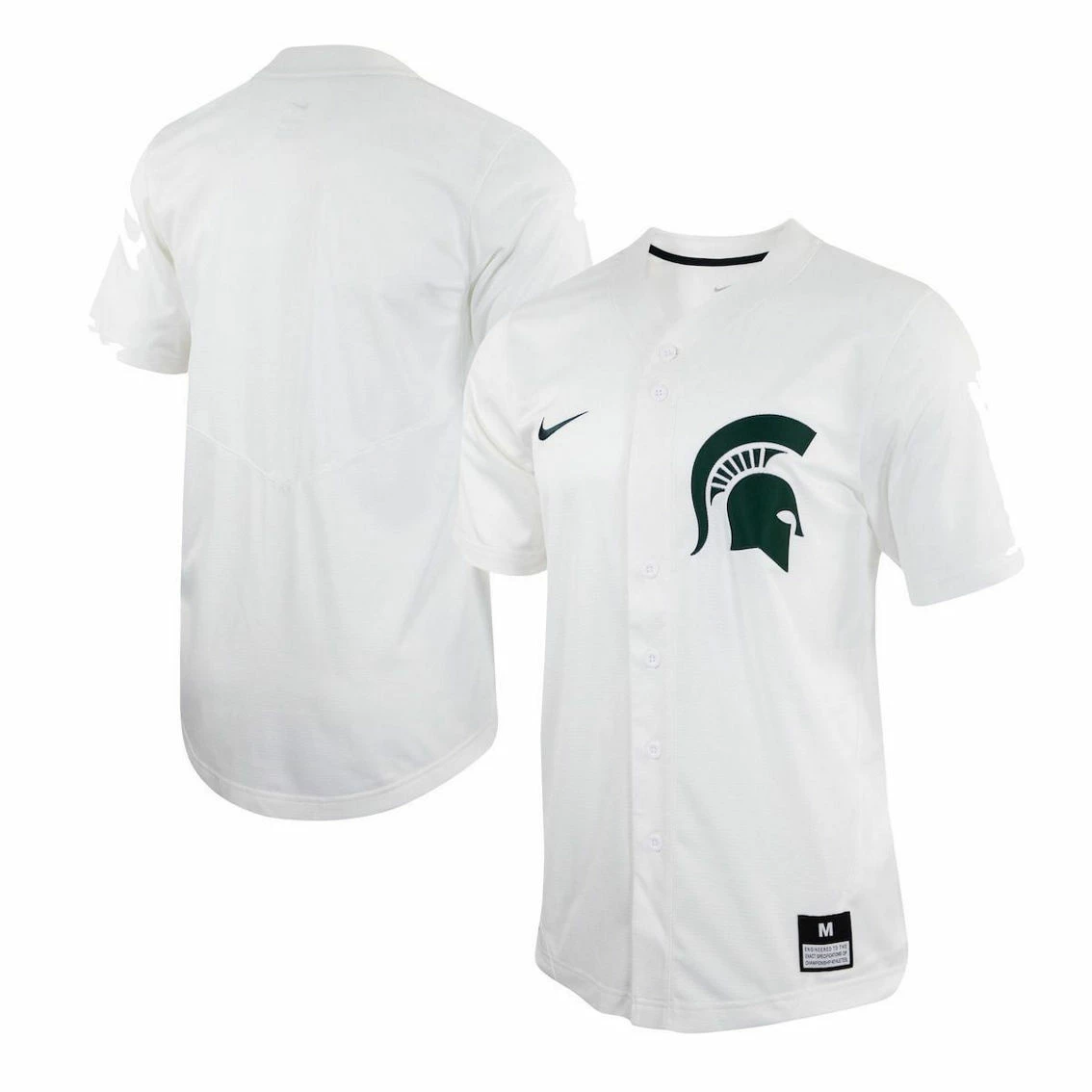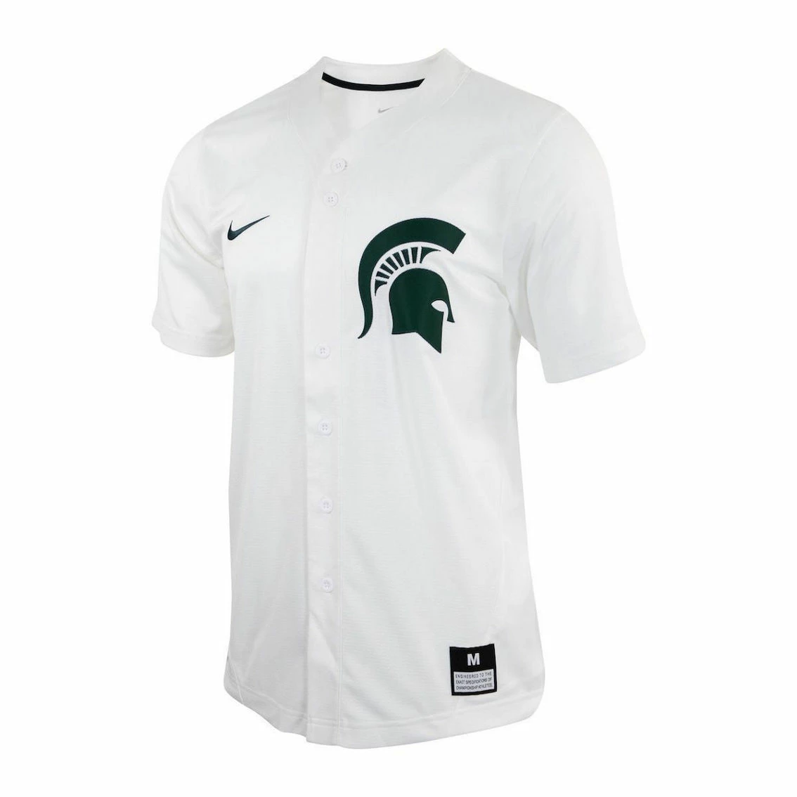 - Make a statement about your Michigan State Spartans fandom with this Full-Button Replica baseball jersey from Nike. It features Dri-FIT technology that wicks away moisture to keep you cool and dry, making it perfect for those hot, sunny games. A stitched Michigan State Spartans applique on the front lets everyone know where your allegiance lies.