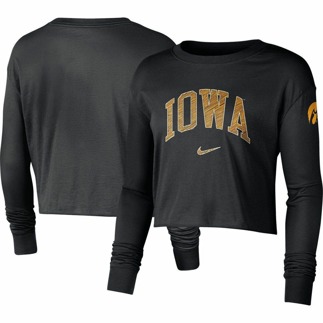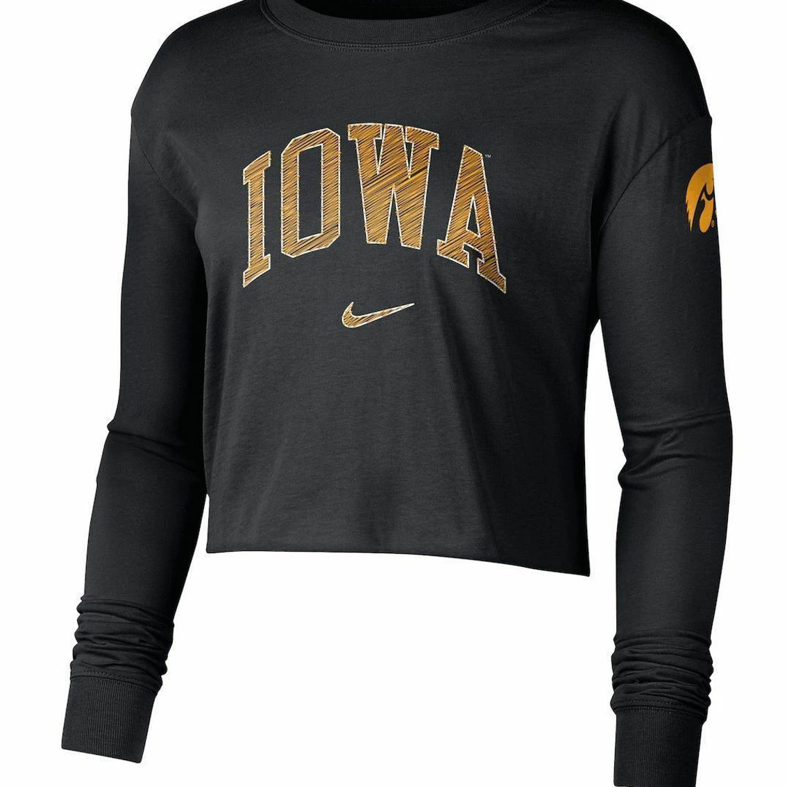 - For a trendy display of your Iowa Hawkeyes pride, check out this Cropped 2-Hit T-shirt from Nike. It features bold team graphics and colors that leave no doubt about your commitment to the team. Reach for this distinct long sleeve tee and show that your Iowa Hawkeyes spirit doesn’t quit.