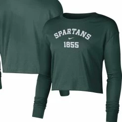 Women's Nike Green Michigan State Spartans Est. Cropped Long Sleeve T-Shirt