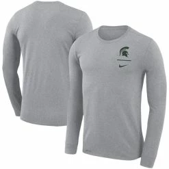 Nike Men's Gray Michigan State Spartans Logo Stack Legend Performance Long Sleeve T-Shirt