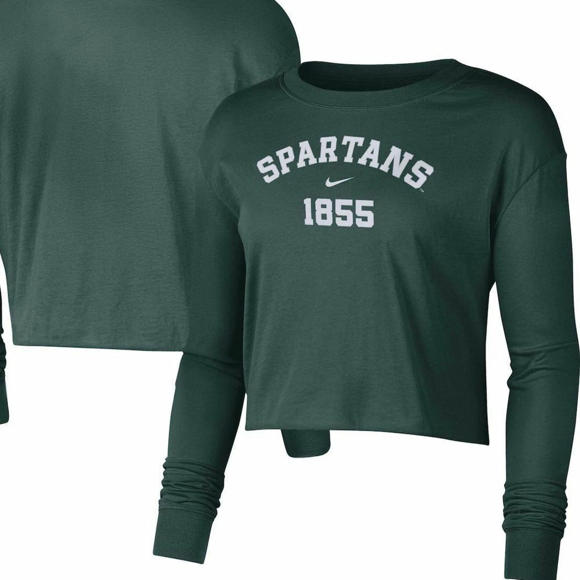 - Grab a tee that makes you feel as good as watching your Michigan State Spartans with this Nike Est. cropped T-shirt. Soft cotton fabric and an oversized fit allow for easy movements and comfort. Bold Michigan State Spartans graphics complete this top for a trendy piece of fan gear.